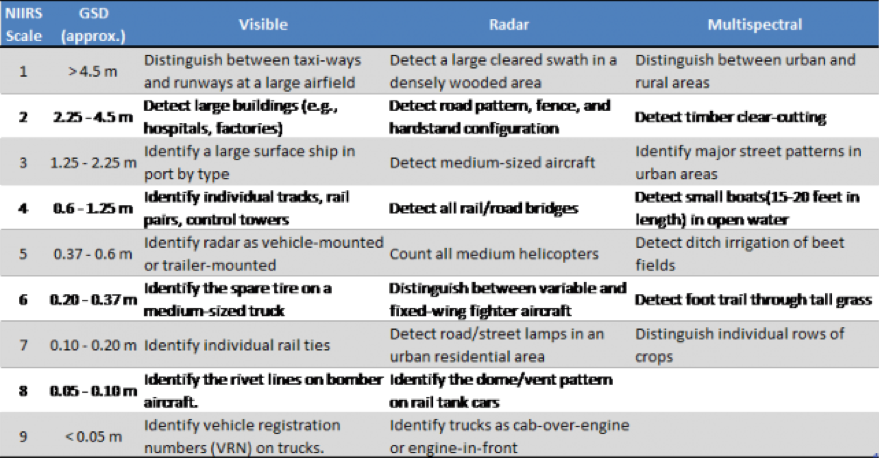 - NIIRS: National Imagery Interpretability Rating Scale