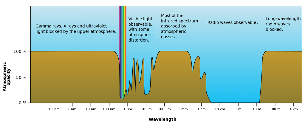 Figure 1: Atmospheric electromagnetic transparency (Source: http://commons.wikimedia.org/wiki/File:Atmospheric_electromagnetic_opacity.svg)