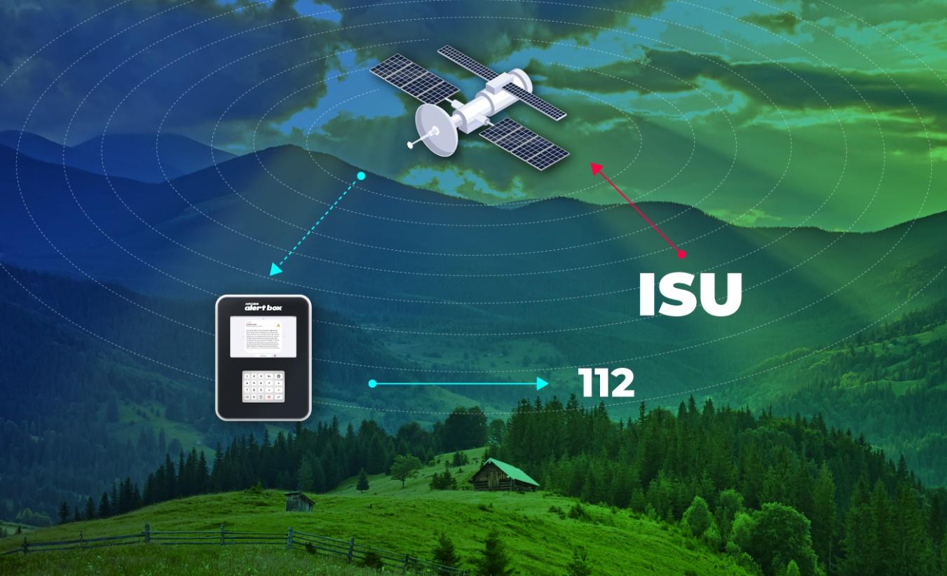 The product is a stand-alone unit connected via satellite with a centralized, secure server. The server, in turn, will communicate with local and national entities providing 112 and E-alert services.