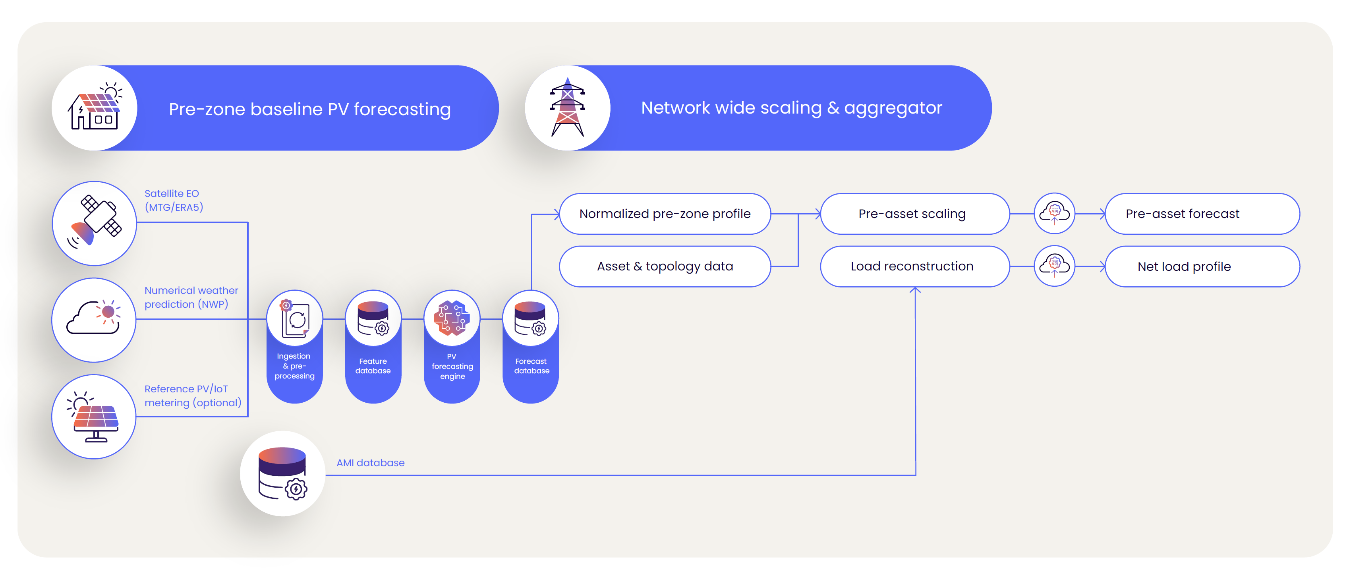 Outputs: Load reconstruction and PV forecasts delivered via dashboards or APIs