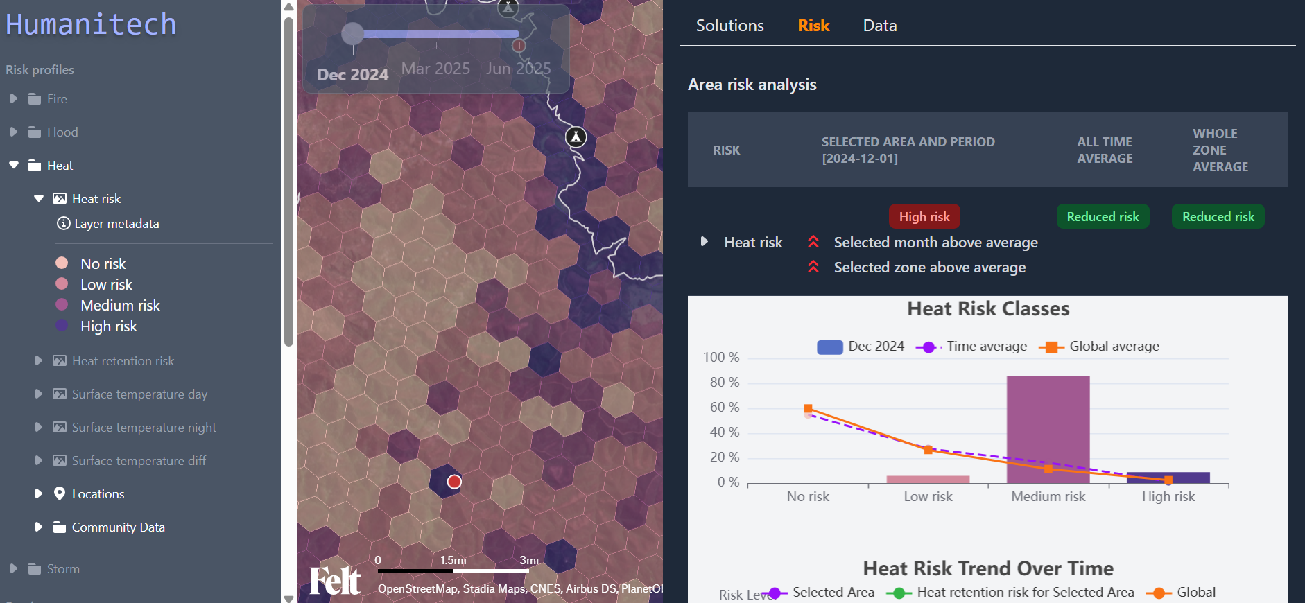 The ONUR project explores how satellite imagery can support climate resilience through better identification and deployment of nature-based solutions (NBS). Rather than developing a final product, the project is currently in an early-stage exploratory phase. The focus is on assessing user needs, technical feasibility, and strategic value for building a digital platform that helps cities and humanitarian organisations plan and prioritise greening interventions (e.g., tree planting, green roofs, permeable pavements). It also aims to support social resilience by identifying areas with vulnerable populations and blocked emergency access routes.