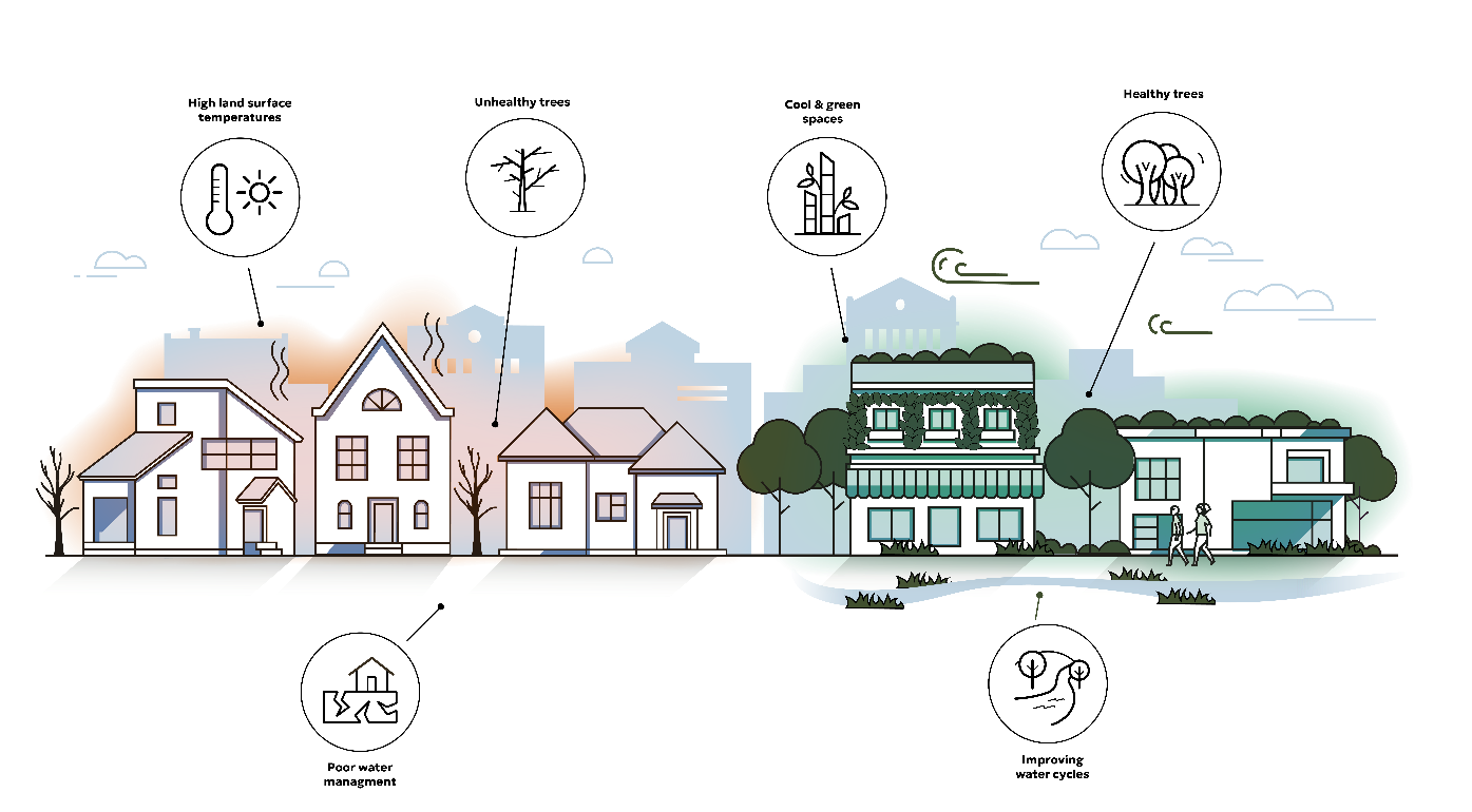 The concept behind ONUR is to provide a planning-support tool that integrates satellite-derived environmental indicators with community and city-level priorities. The solution will include a technical framework to combine data such as tree canopy extent, surface temperature, flood risk, and available space to identify the best mix of nature-based solutions for specific locations. It is designed to enable cities and humanitarian networks to explore where interventions like tree planting, green roofs, or permeable pavements can be most effective, considering local constraints and benefits. The backend system leverages WEO’s cloud-based processing pipelines and AI models, with outputs delivered through a geoportal or integrated directly into municipal systems.