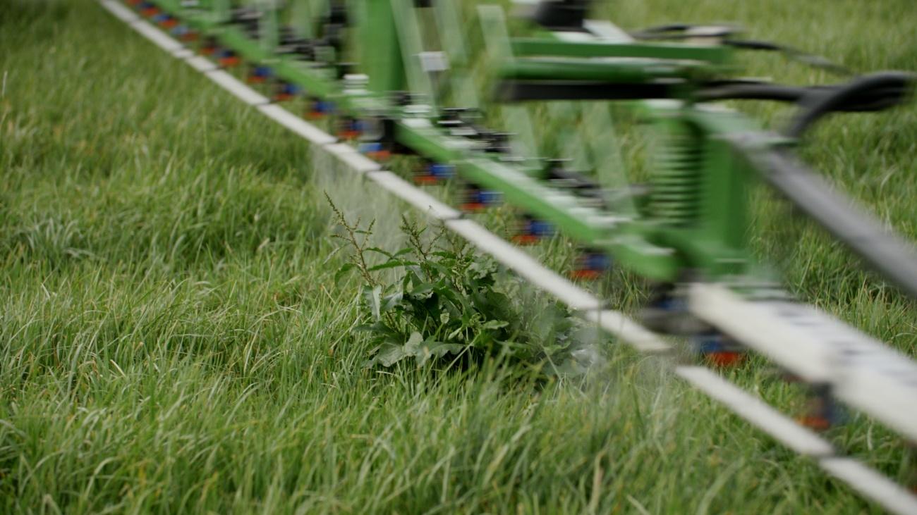 Until now, selective treatment of rumex has been carried out using a complex spot application technique specializing in rumex, with a maximum working width of 9 meters. Since the extent and exact location of the target areas are unknown, it is not possible to calculate the required application rate in advance or plan an efficient treatment route. As a result, either spray mixture is left over, or it must be remixed. In addition, the entire area must be covered, even though often only parts of it are affected. A preliminary estimate of the amount of herbicide required is possible by means of an additional step involving a drone flight. However, this causes more work and higher costs, which are often not worthwhile in grassland. Drone operations are not possible in many locations due to legal and other restrictions